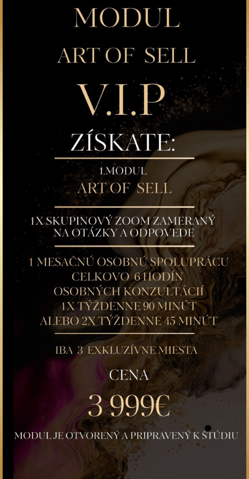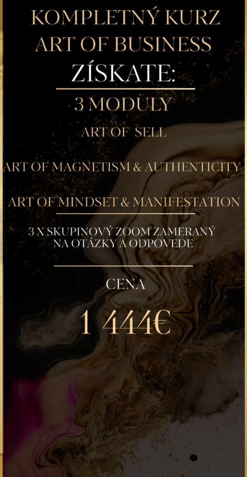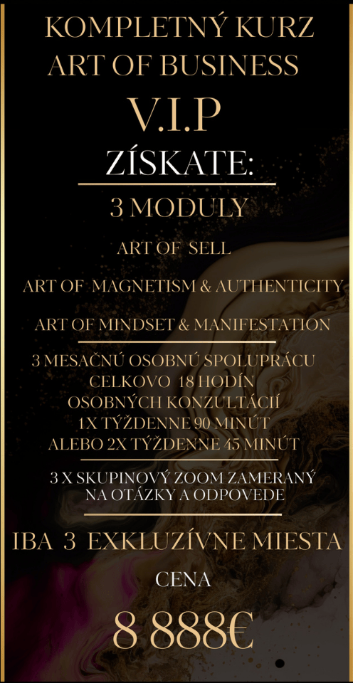 Kurz art of business je možné získať kompletný alebo každý modul samostatne, vo V.I.P alebo štandardnej verzii.