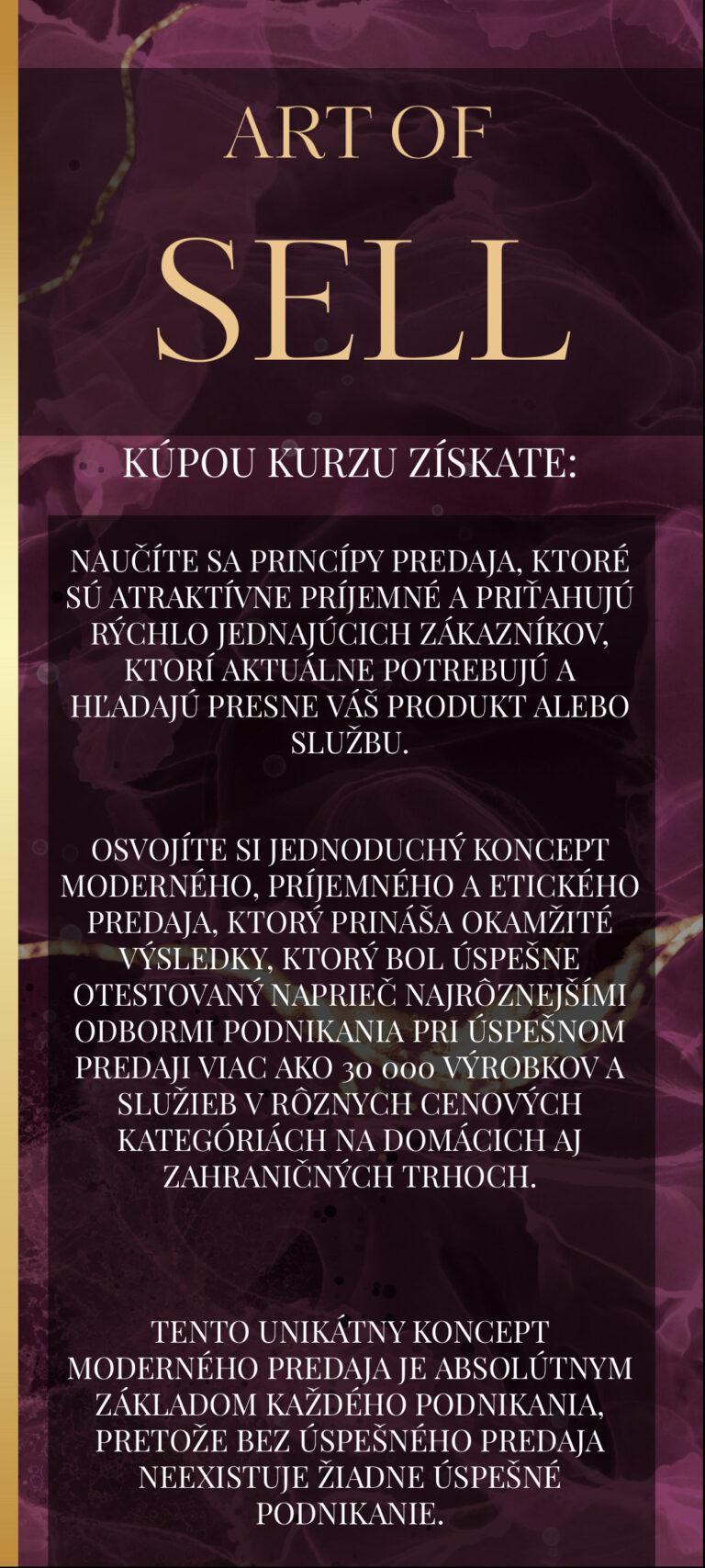 Naučíte sa, ako predávať rýchlo, jednoducho, efektívne a okamžite, bez nutnosti znižovať sa k manipulatívnym alebo nátlakovým technikám, ktoré sú rovnako nepríjemné vám aj vašim potenciálnym zákazníkom.